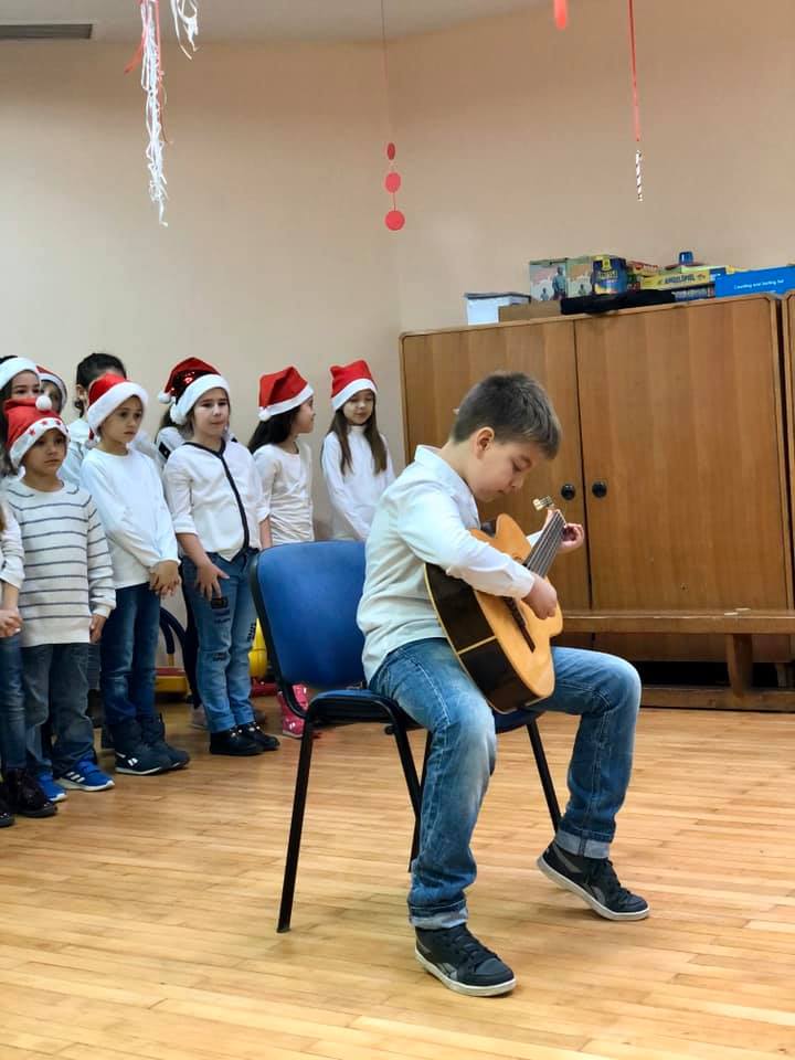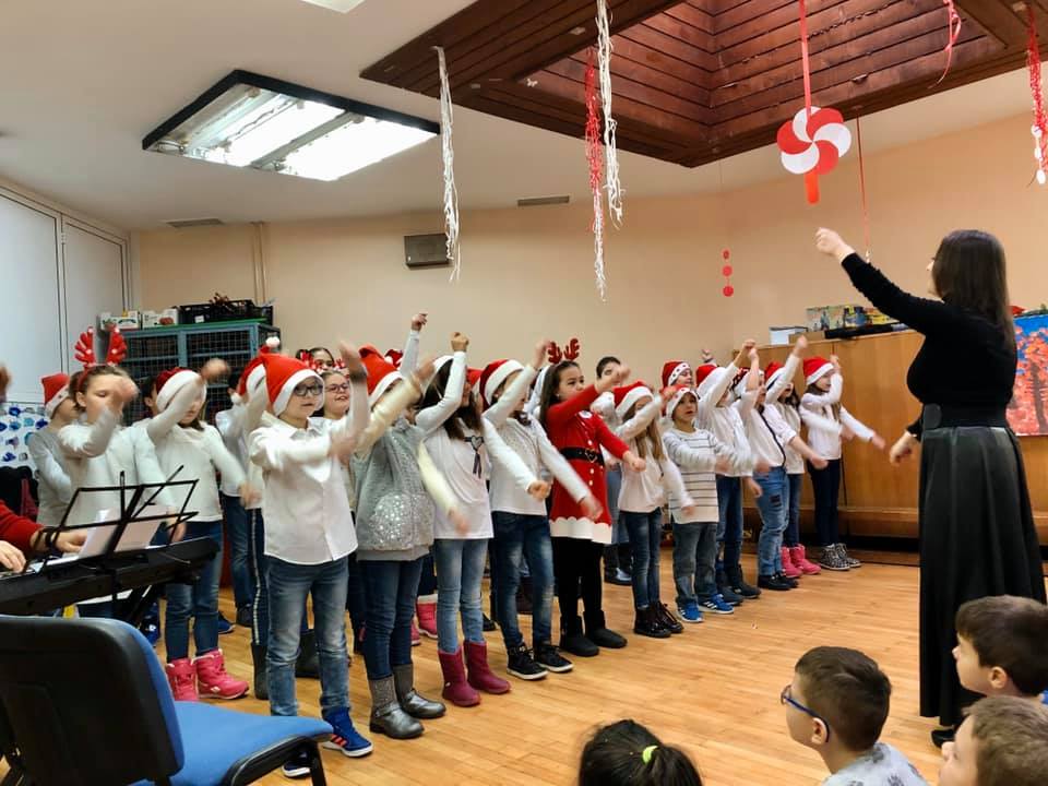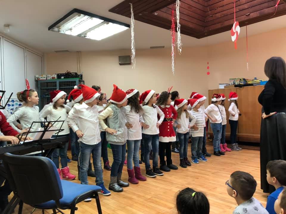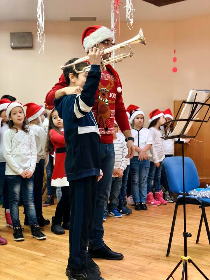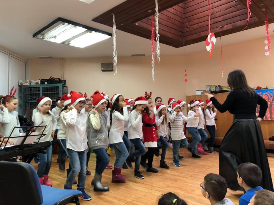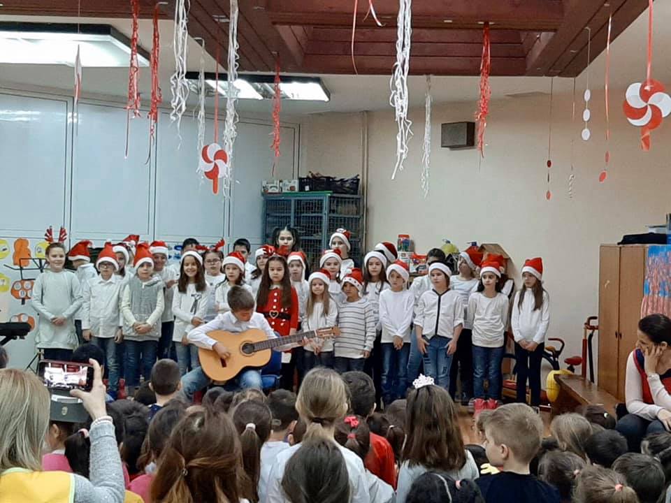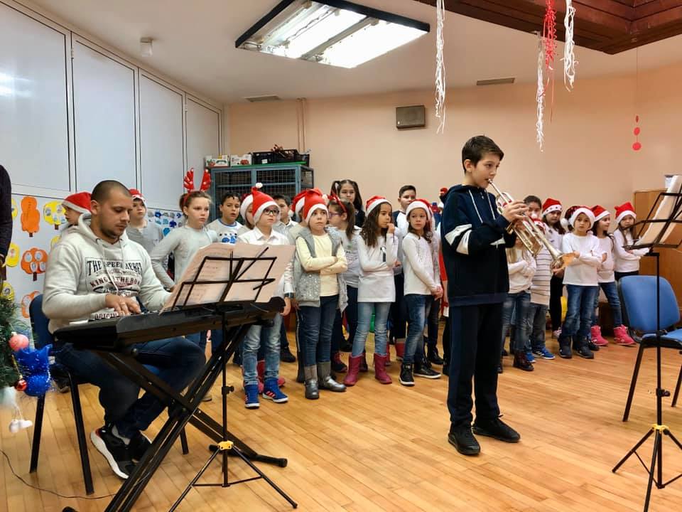 Na Novogodišnjem koncertu koji smo organizovali za naše male drugare 24.decembra, čuli su se zvuci violine, gitare, klavira, harmonike i trube, kao i Horić učenika prvaka.